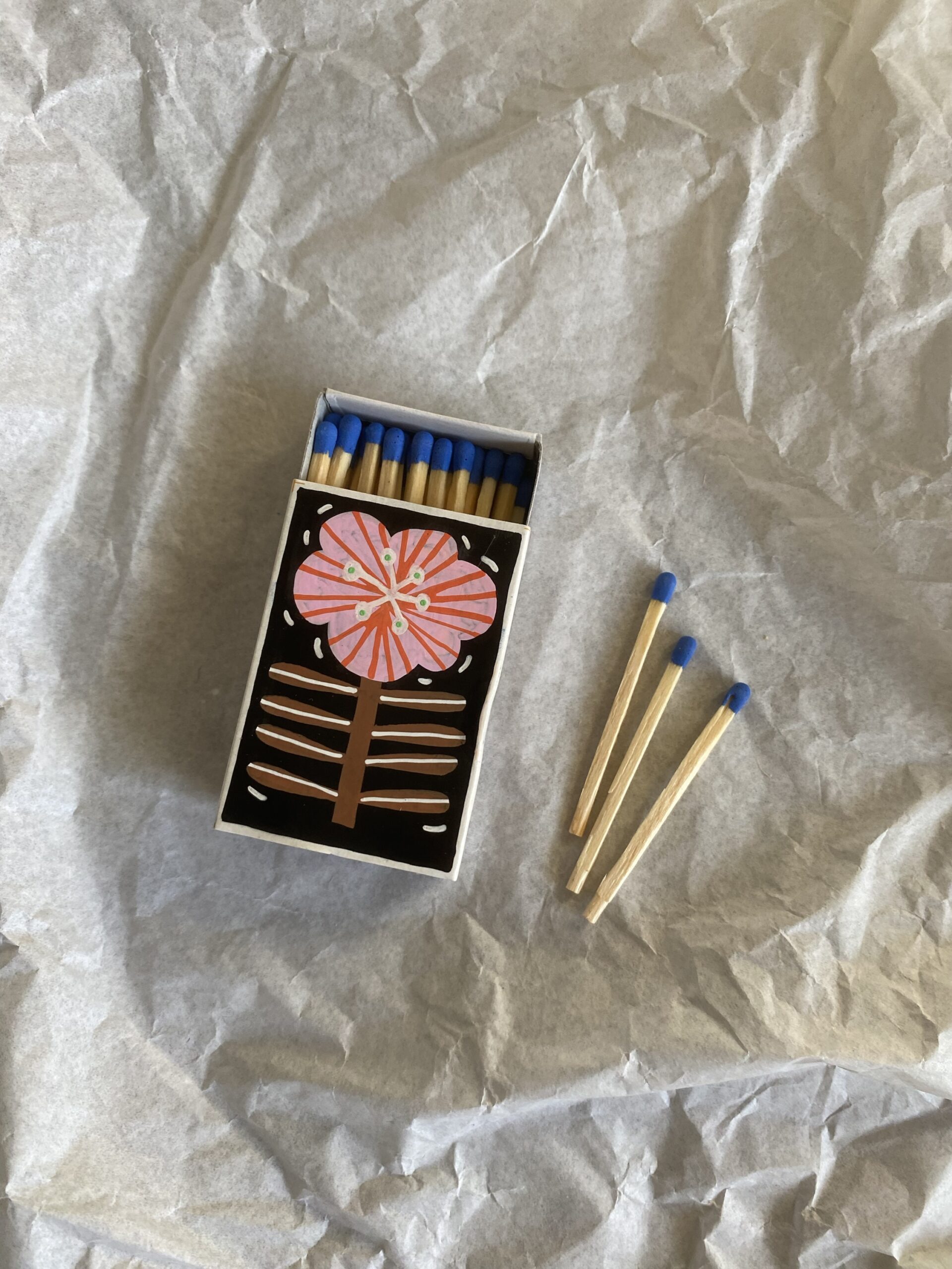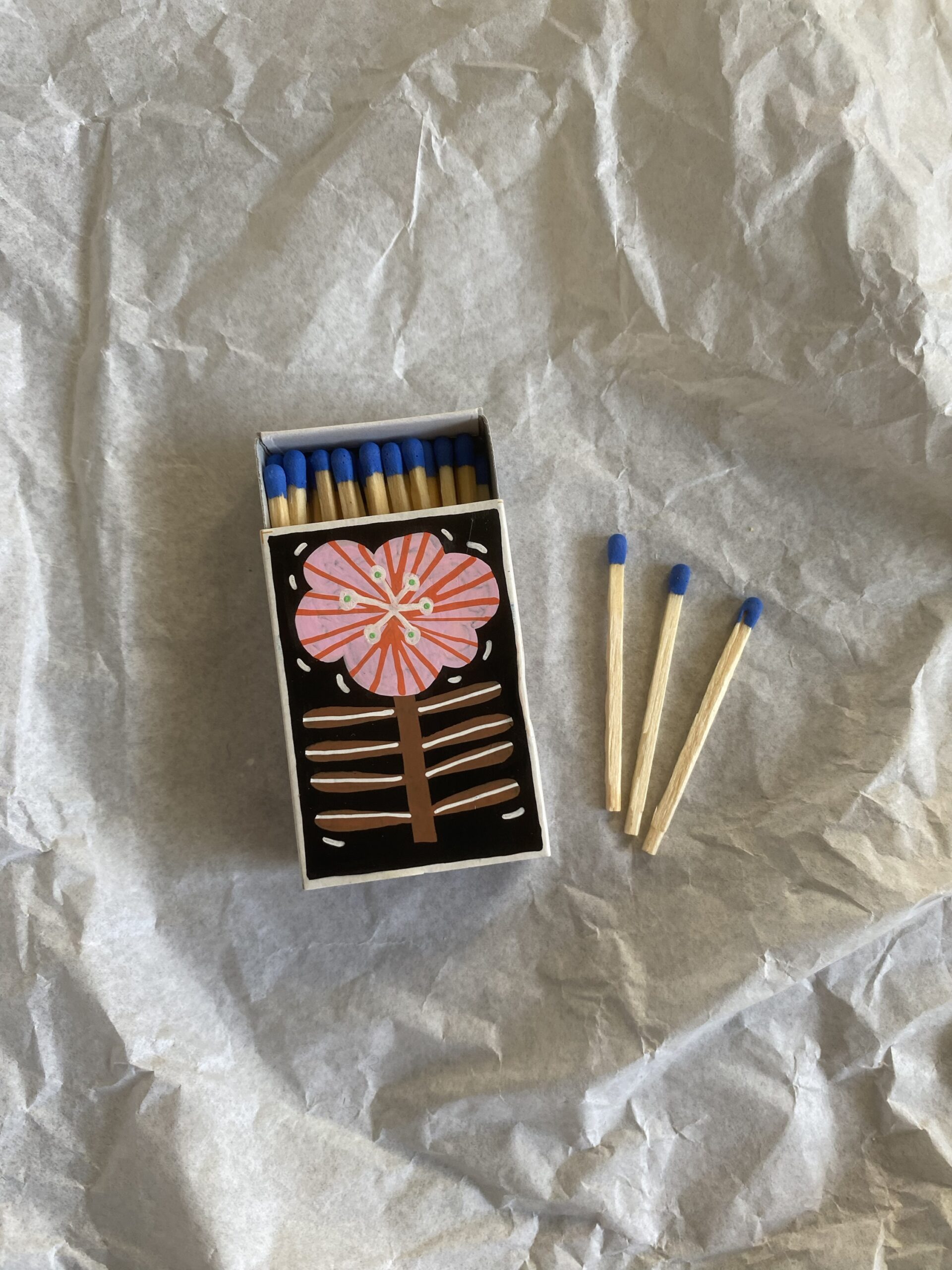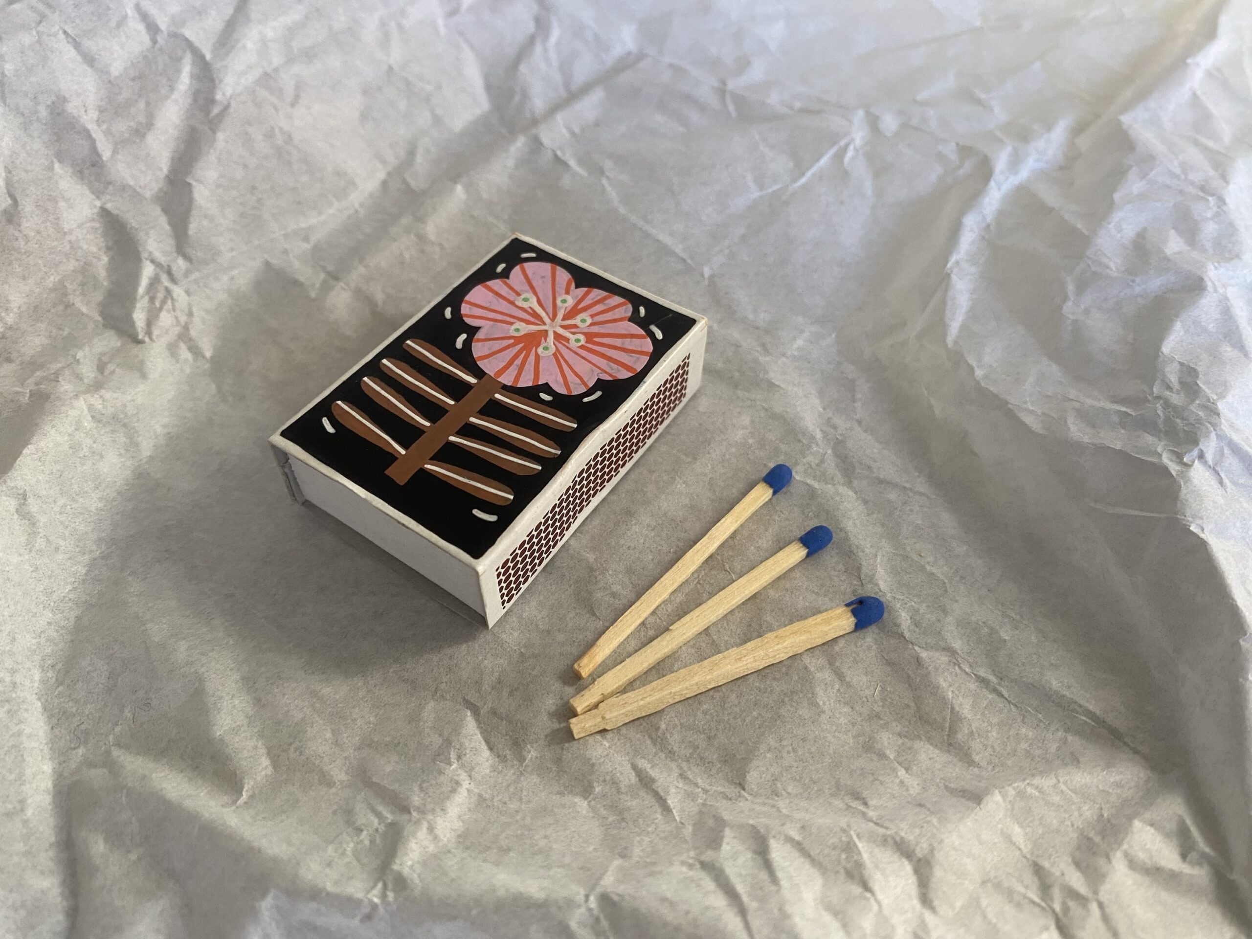 Handmålad tändsticksask – varje ask är unik. Penna + lack.