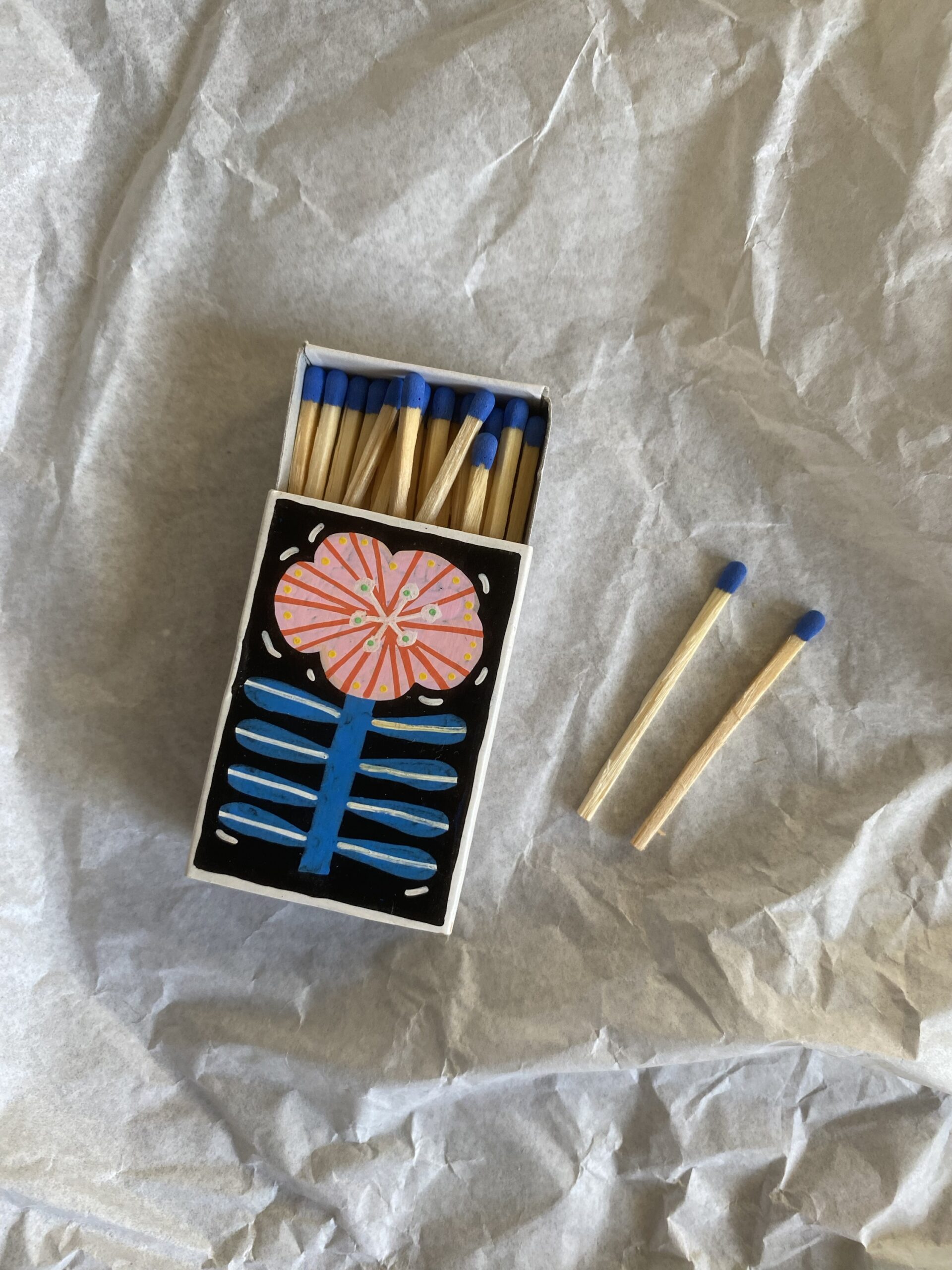 Handmålad tändsticksask – varje ask är unik. Penna + lack. Mått: 3,5 x 5 cm